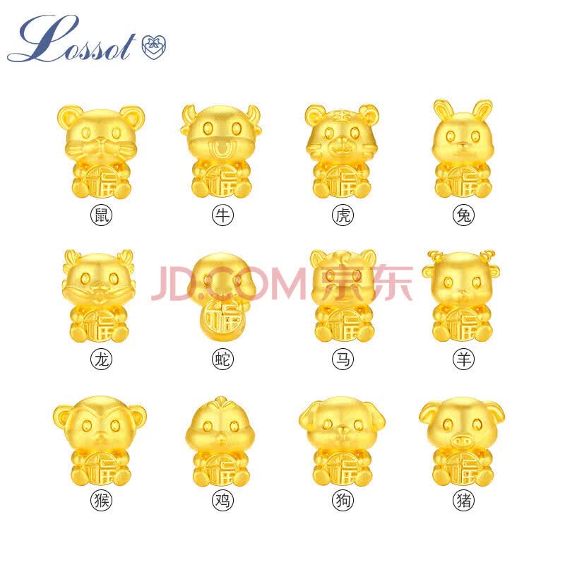 商品相册:Lossot生日礼物本命年十二生肖鼠足金福鼠黄金转运珠手链5D硬金鼠红绳第