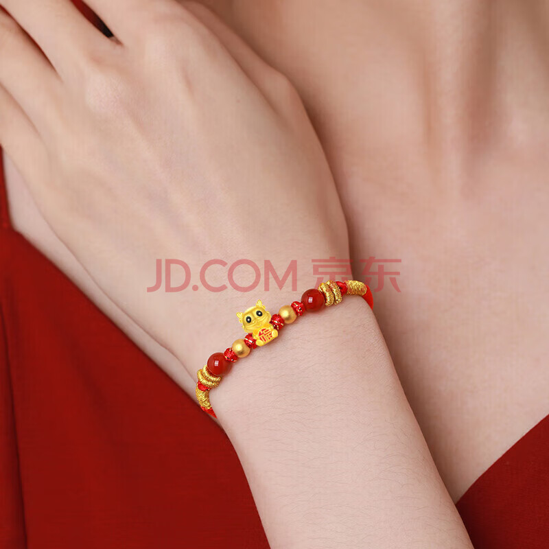 商品相册:Lossot生日礼物本命年十二生肖龙足金福龙金珠黄金转运珠手链金龙红绳第