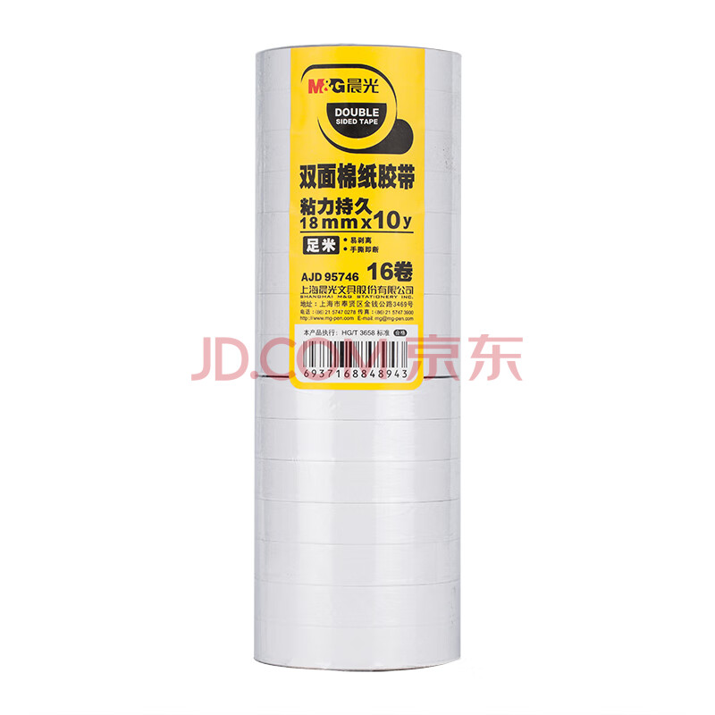 商品相册:晨光(M&G) 文具双面胶薄款办公装饰维修墙面宽胶 18mm*10y 办公用品16卷/筒 AJD95746 第