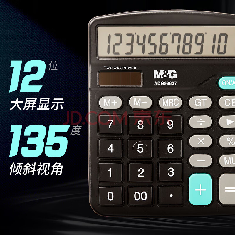 商品相册:晨光(M&G)文具双电源计算器 太阳能桌面计算机12位大屏幕计算器 办公用品 2个装ADG98837第