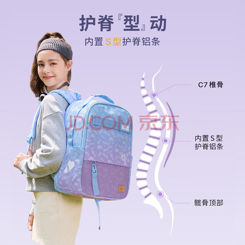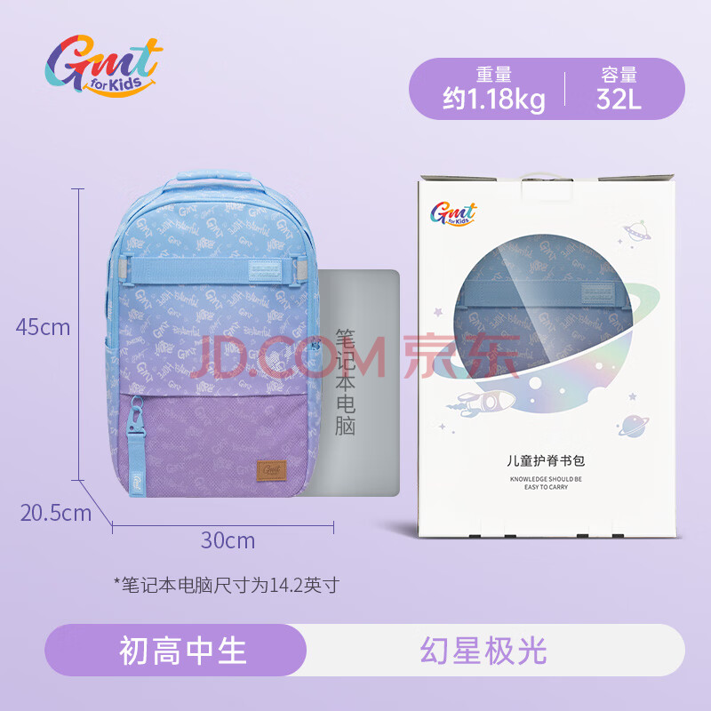 商品相册:Gmt for kids初高中生书包小学生大容量背包中学生护脊减负双肩包5-6年级女紫第