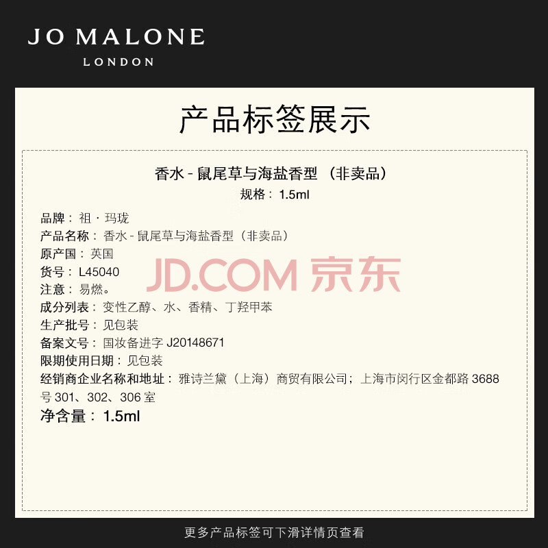 商品相册:祖玛珑【会员专享试用】明星香氛体验礼(鼠尾草1.5ml+回购券) 小样第