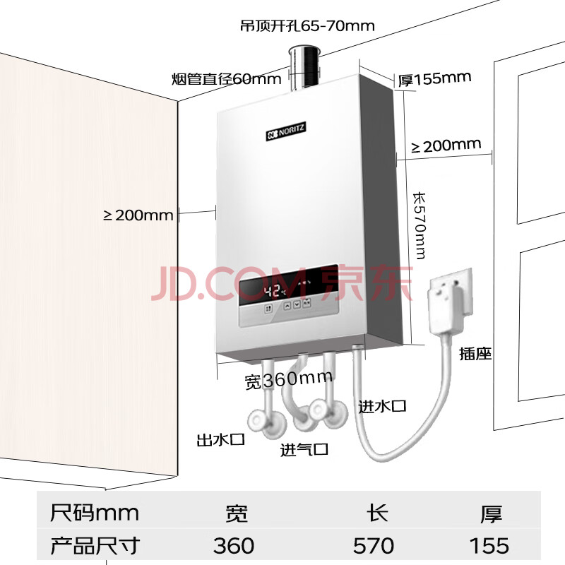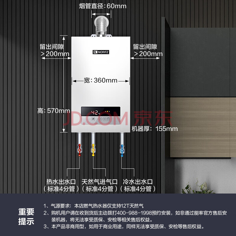 商品相册:能率(NORITZ)燃气热水器16升 恒温 双控温技术GQ-16JD01FEX(JSQ31-JD01)天然气*第