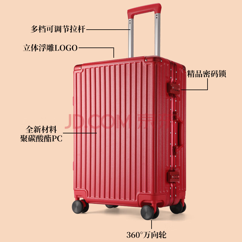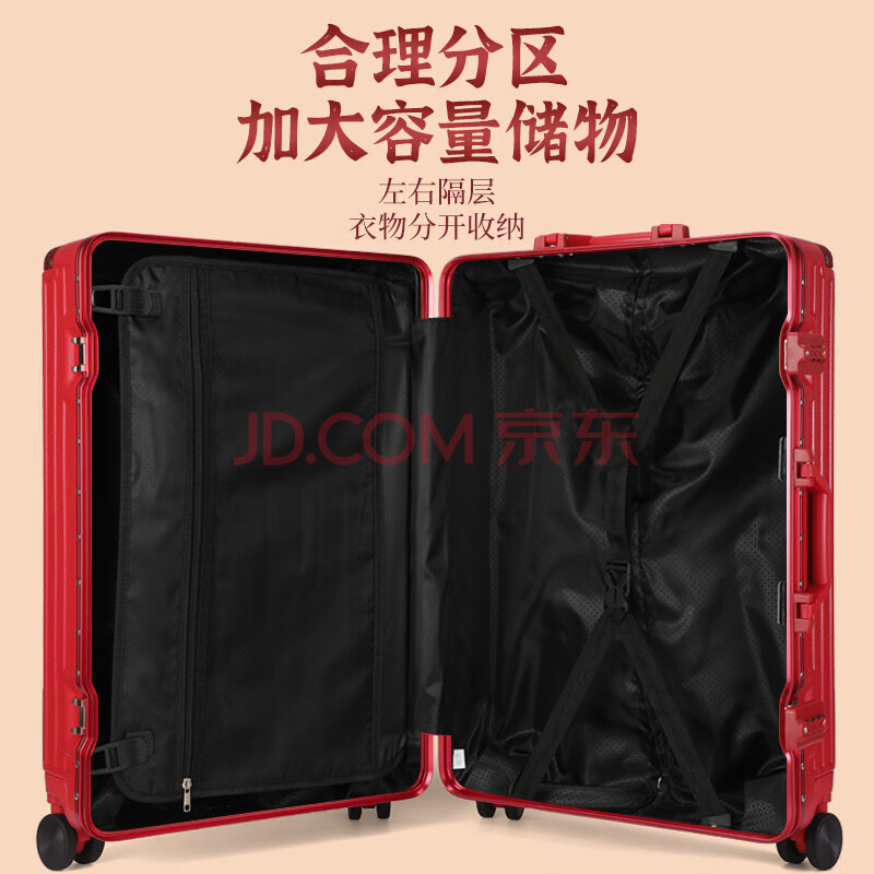 商品相册:皮尔卡丹行李箱红色喜庆新娘陪嫁24英寸铝框拉杆箱婚庆结婚大容量旅行箱女第