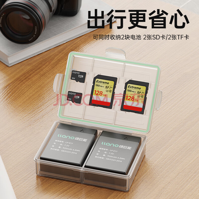 商品相册:绿巨能(llano)相机电池收纳盒适用佳能LP-E17电池专用款收纳盒可装2张SD卡/2张TF卡第