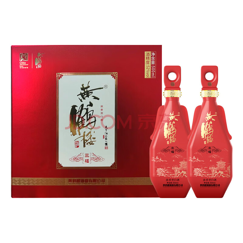 商品相册:黄鹤楼 更上层楼三楼礼盒 浓香型 52度白酒 500ml*2 礼盒装 送礼自饮 第
