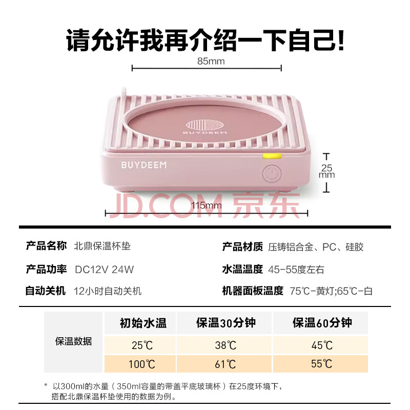 商品相册:北鼎(Buydeem)保温杯垫圈 电热杯垫水杯恒温加热器恒温暖杯器办公室茶杯托暖奶器隔热保温垫 OA2001猪猪粉第