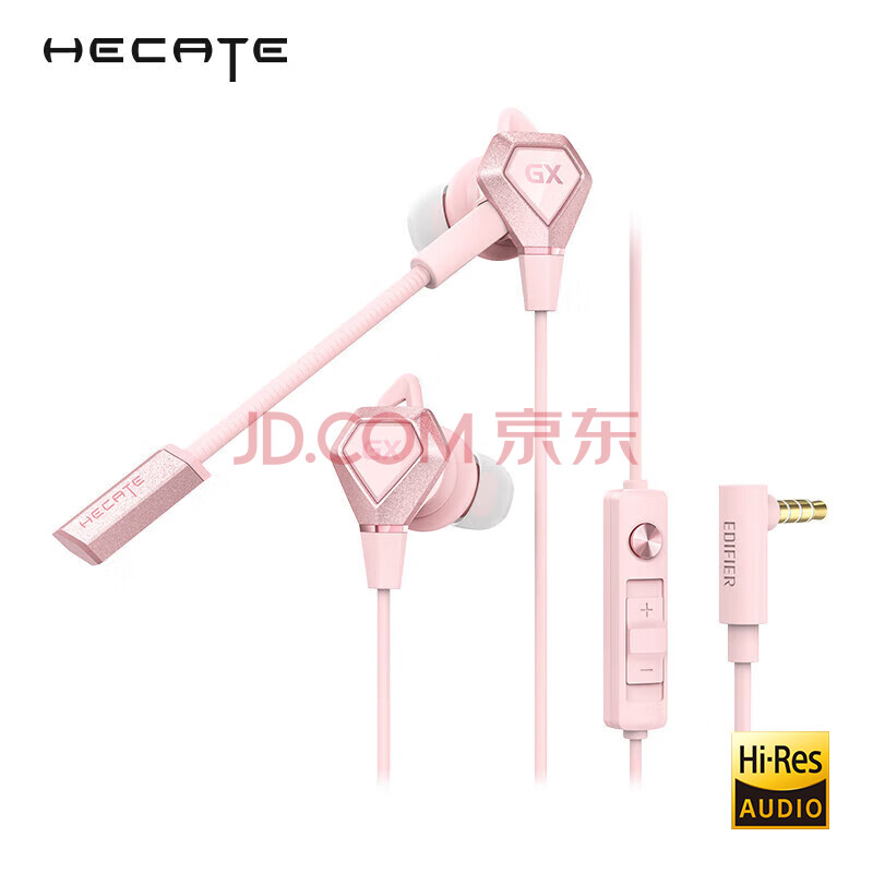 商品相册:漫步者(EDIFIER)HECATE GX04竞技版 入耳式游戏耳机带麦 电脑手机直播耳麦 电竞吃鸡有线耳机礼物 樱花粉第