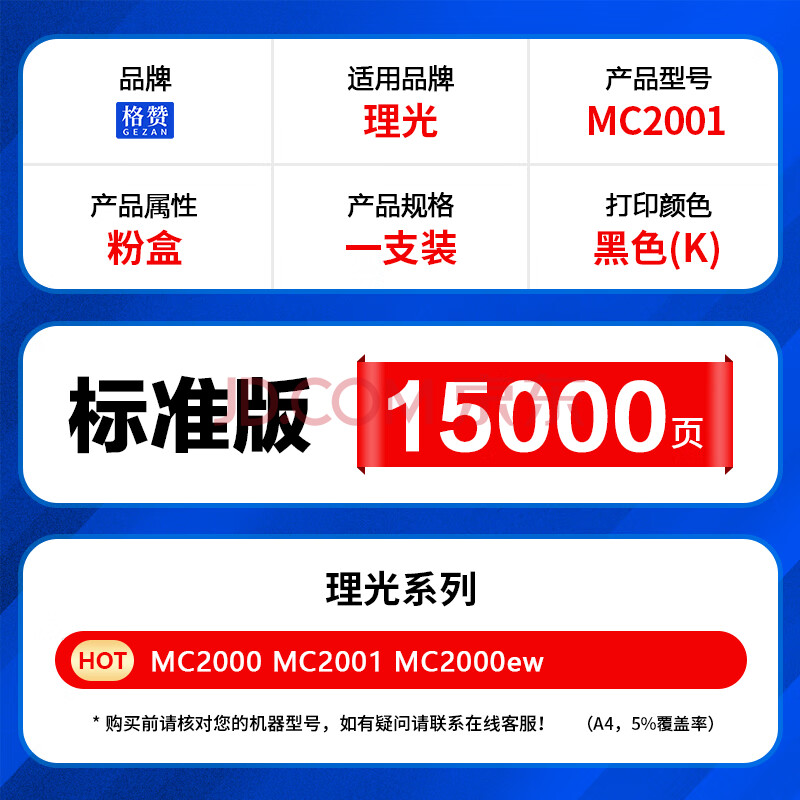 商品相册:格赞M C2001粉盒黑色 适用理光MC2000粉盒Ricoh MC2001碳粉MC2000ew/C/L/SP MC2501打印机复印机墨盒墨粉硒鼓第