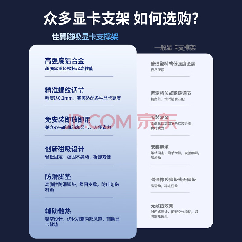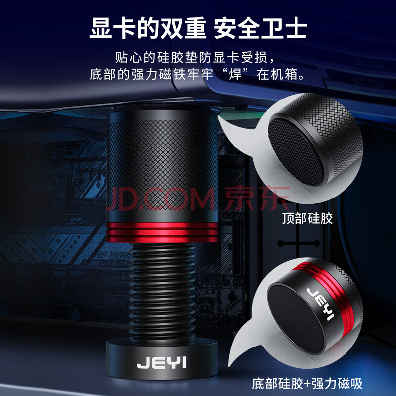 商品相册:佳翼(JEYI)显卡支架 40/50系显卡托架 风扇位支撑架 海景房台式电脑机箱 圆柱底部磁吸高度可调铝合金材质第