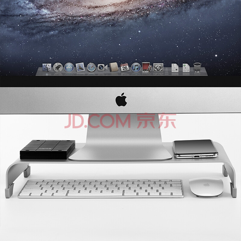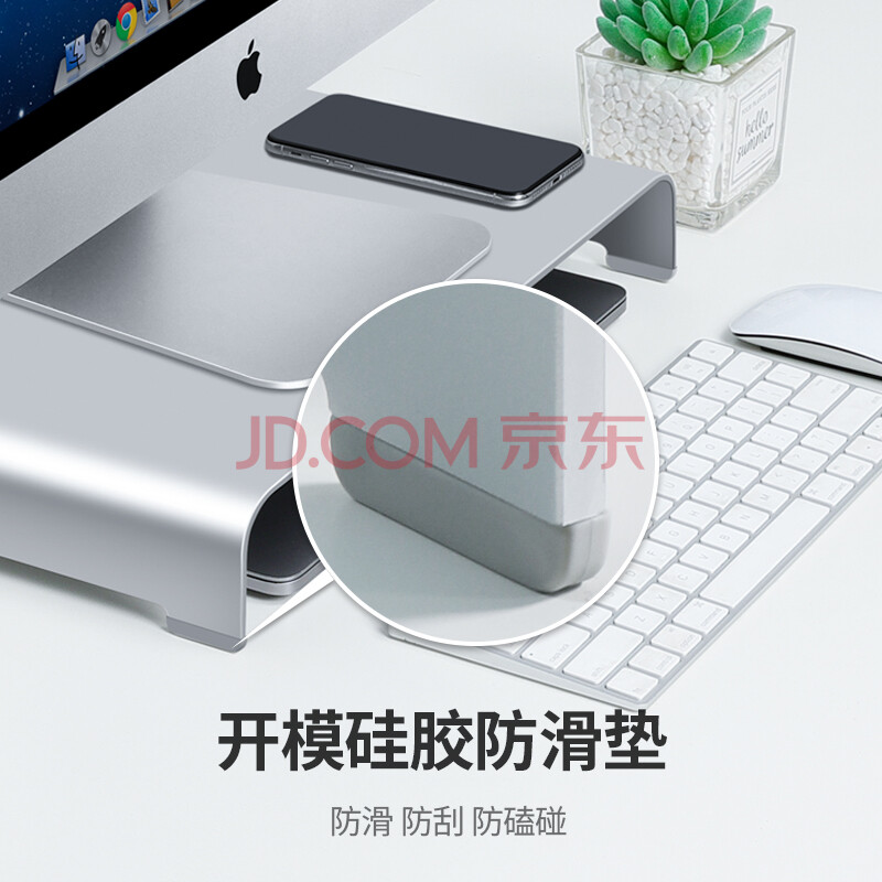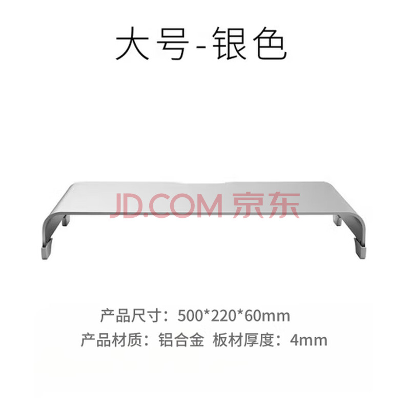商品相册:鹿为 显示器增高架底座笔记本电脑支架铝合金散热支架键盘收纳置物架 50*22*6cm大号6CM高-银色 ZG1031第