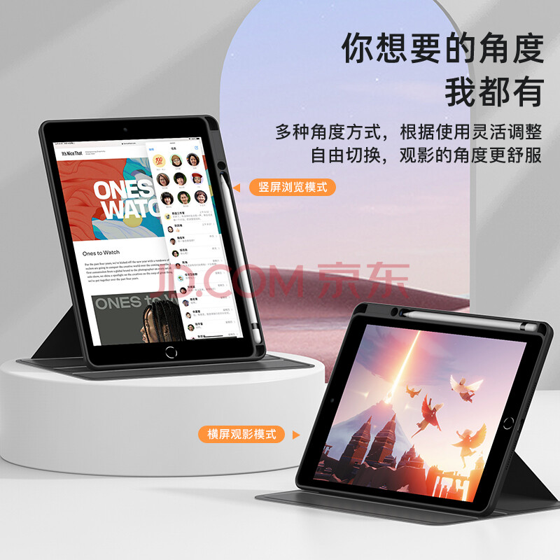 商品相册:智思慧 适用Apple iPad第7/8/9代保护套苹果平板Air3旋转横竖支撑透明壳硅胶防摔皮套10.2/10.5英寸 黑色第