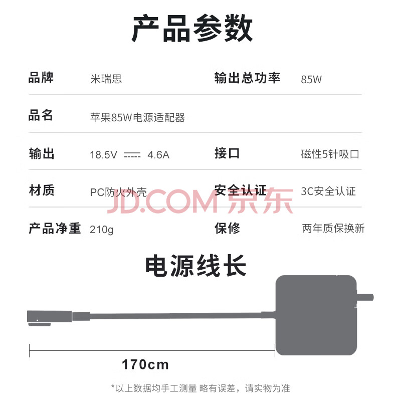 商品相册:米瑞思(mryc)苹果笔记本电脑充电器85W 适用MacBook Pro A1286 A1343 A1297 1.7米电源适配器线 18.5V4.6A第