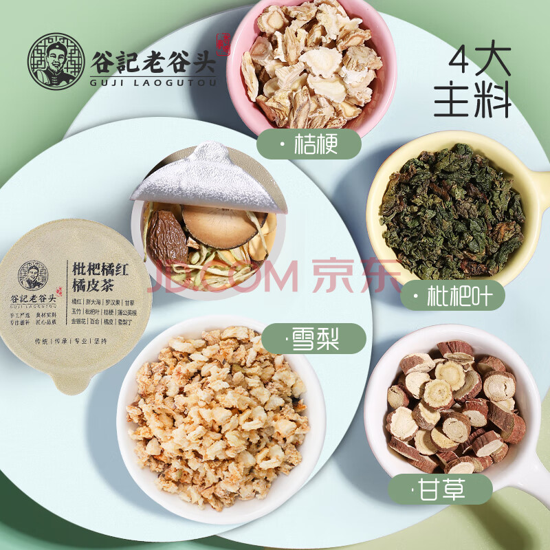 商品相册:老谷头枇杷橘红雪梨茶养生茶橘皮金银花茶胖大海罗汉果甘草桔梗百合茶第