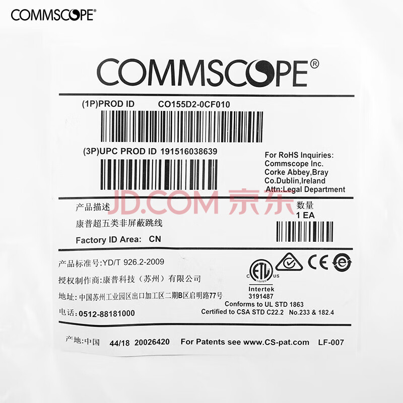 商品相册:AMP NETCONNECT康普CO155D2-0CF010超五类10英尺跳线(原安普品牌)第