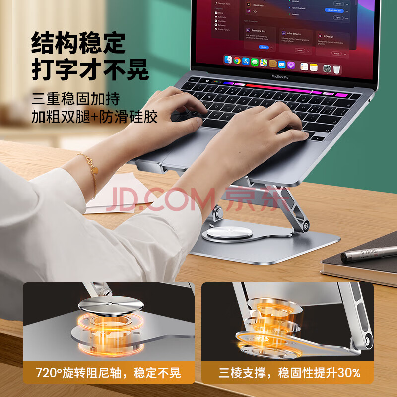 商品相册:鹿为 笔记本电脑支架360度旋转支架可升降折叠Apple联想华为适用平板金属支架 高颜值女生情人节礼物第
