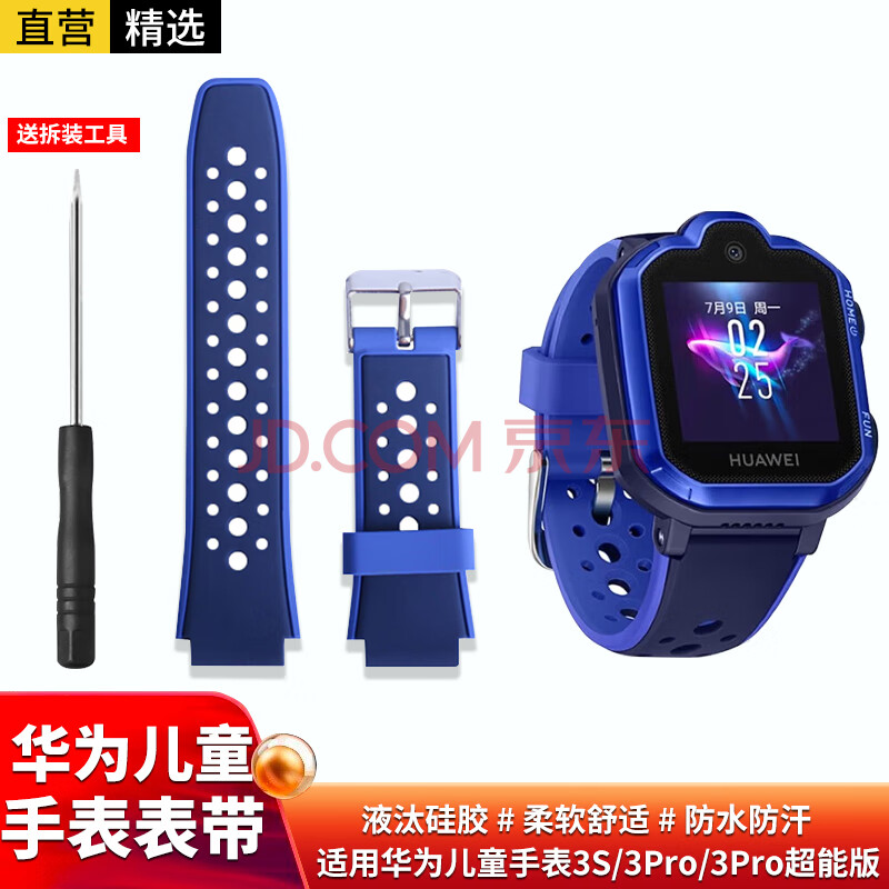 商品相册:轩邑 适用华为儿童电话手表表带3S/3Pro超能版表带 防水防汗可拆卸硅胶男女通用款 送拆卸工具 极光蓝第