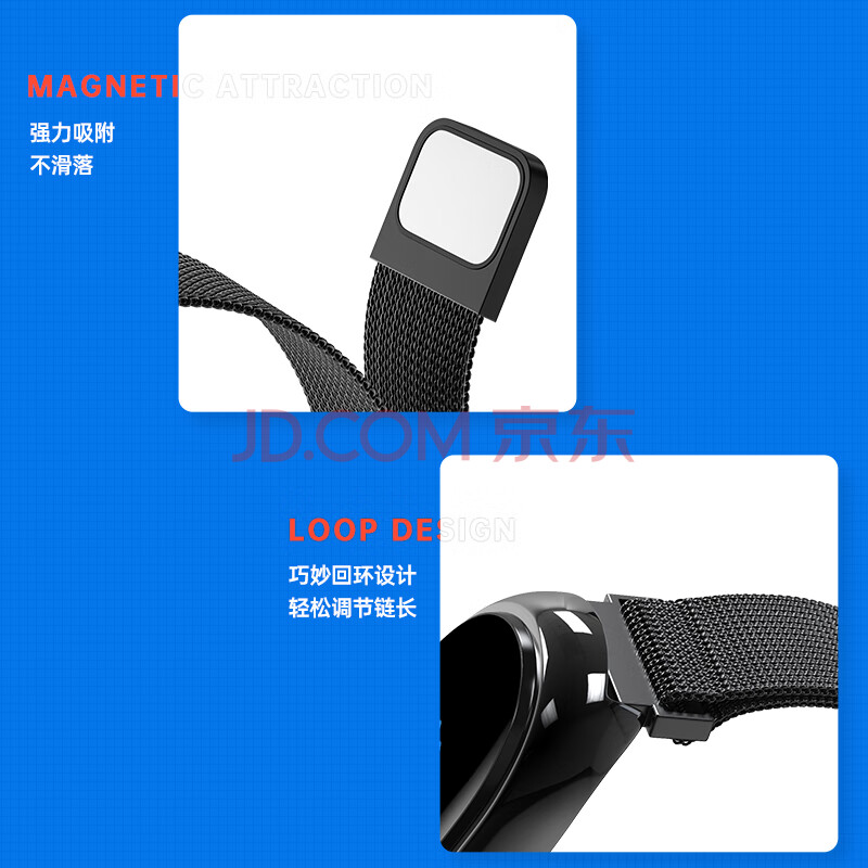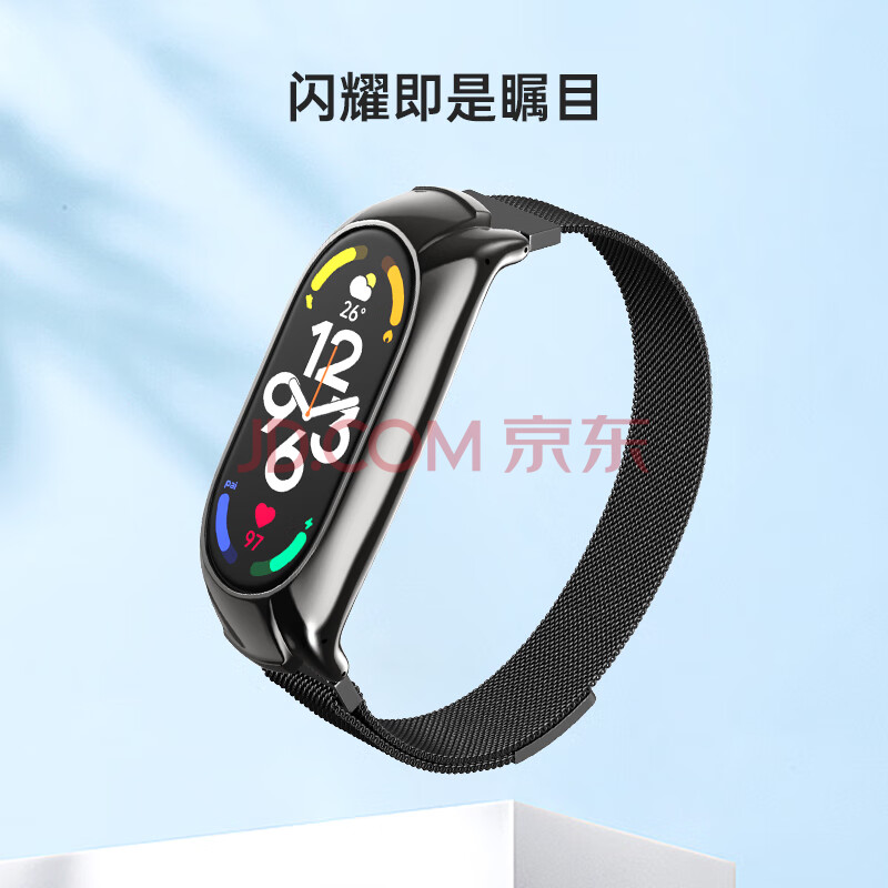 商品相册:CangHua 适用小米手环7表带磁吸7代nfc版替换腕带米兰尼斯表带轻薄透气男女生男士运动手环配件 金属黑第