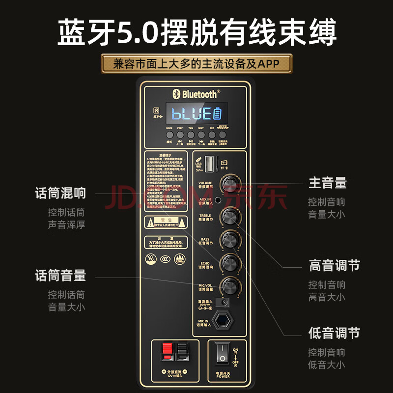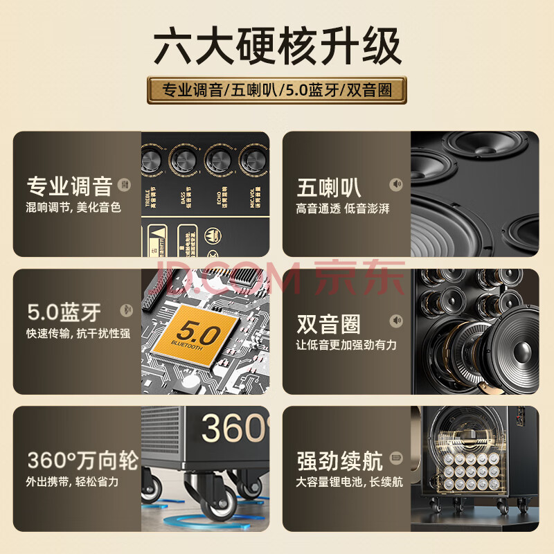 商品相册:新科(Shinco)V50广场舞音响户外大音量拉杆音箱五喇叭木质箱体大功率家用K歌移动摆摊低音炮10吋单咪第