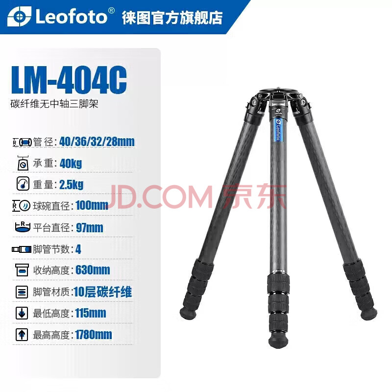 商品相册:徕图(Leofoto)三脚架 轻量便携观鸟长焦摄影摄像碳纤维无中轴三脚架 LM-404C(单脚架)第