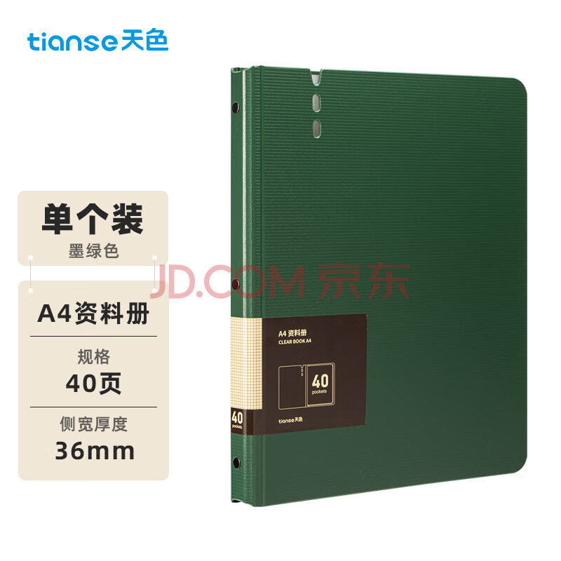商品相册:天色 A4/40页加厚插页资料册文件夹 多功能办公室收纳神器 试卷收纳孕检册乐谱夹 TS-1649 墨绿色第