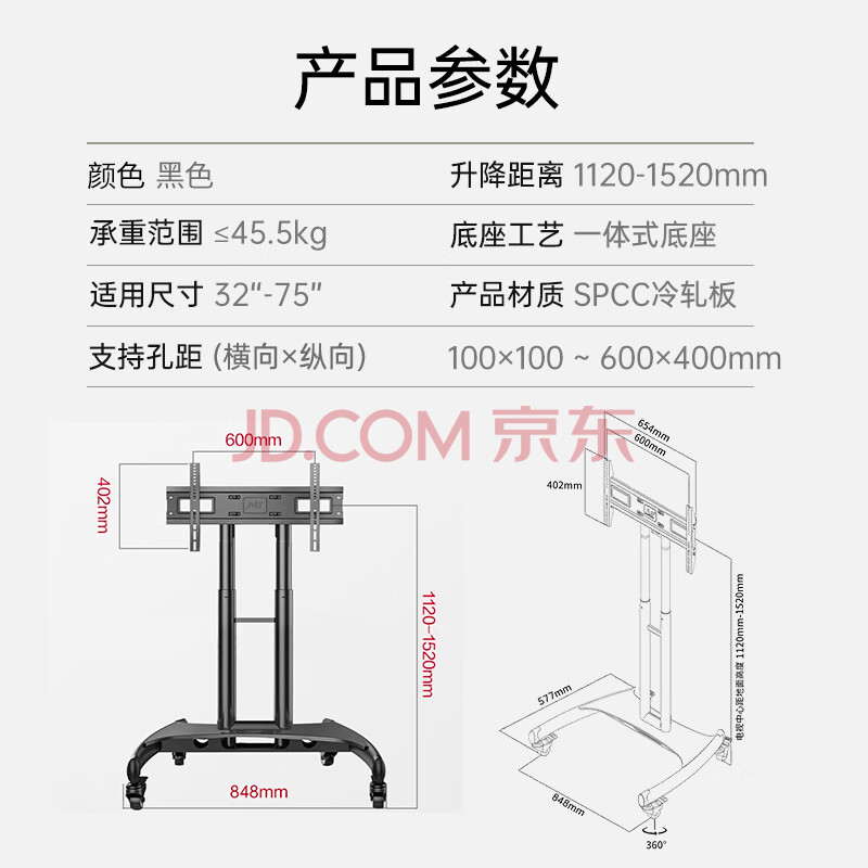 商品相册:Emmy Mount艾美电视支架 电视架 移动电视挂架 办公会议显示器支架 创维小米海信TCL电视支架落地32-75英寸第
