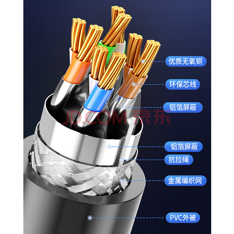 商品相册:倍立方7类纯铜网线 Cat7七类屏蔽8芯双绞线 工程级万兆网络连接线 电脑家用成品跳线 10米 黑色 C70100A1第