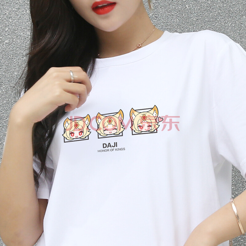 商品相册:王者荣耀 Q萌表情三连拍印花T恤妲己款L码 专供第1张/共4