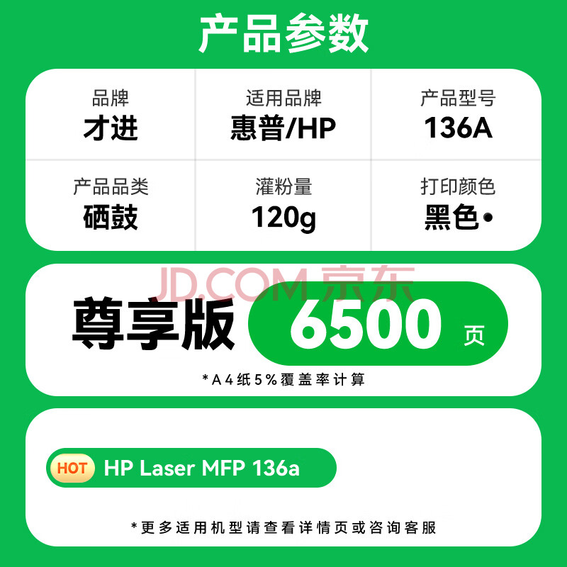 商品相册:才进适用惠普136硒鼓HP Laser MFP 136a黑白激光打印机墨盒4ZB85A粉盒带芯片墨粉盒136a复印一体机易加粉晒鼓第