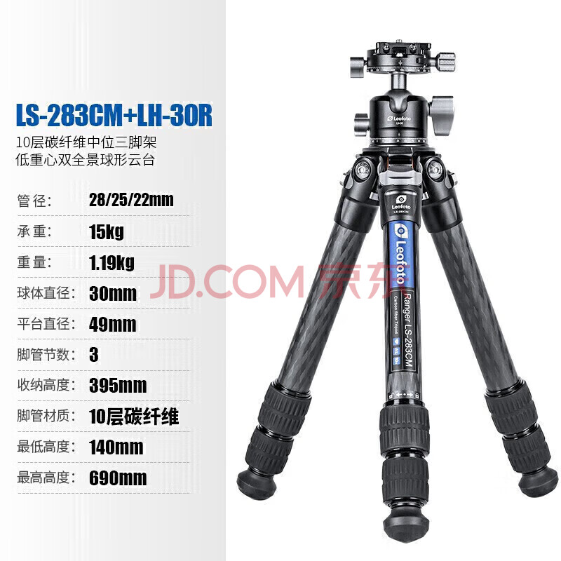 商品相册:徕图三脚架 碳纤维轻便型低位拍摄摄影摄像微单单反相机专业星空三脚架云台套装 LS-283CM+LH-30R第