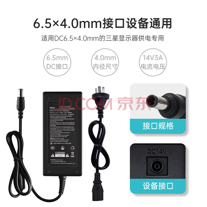 商品相册:米瑞思(mryc)三星显示器电源线14V3A/2.5A/2.14A/1.78A/1.43A液晶电脑电源适配器显示屏通用笔记本充电器第