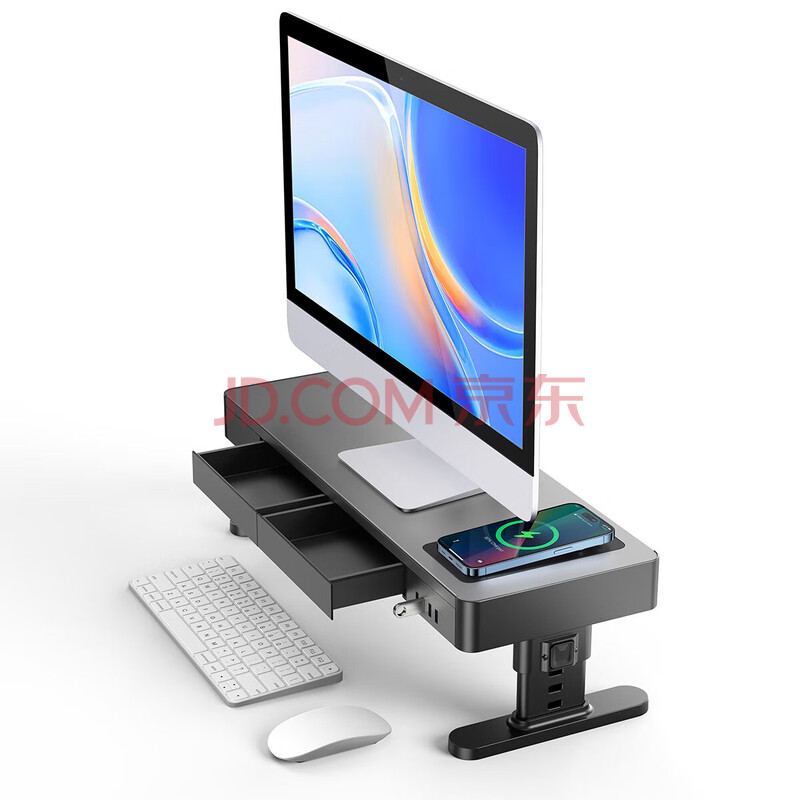 商品相册:鹿为 显示器增高架笔记本电脑支架桌面台式显示屏垫高托架底座usb3.0升降+无线充带抽屉增高架 ZGL121第
