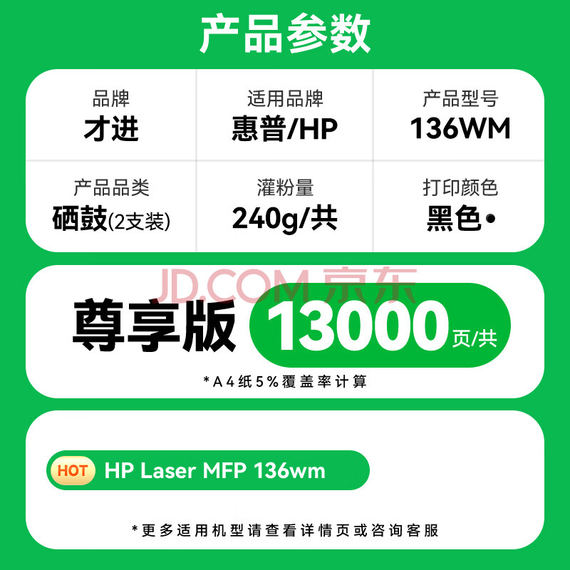 商品相册:才进适用惠普136wm硒鼓HP Laser MFP 136wm激光打印机墨盒 136wm带芯片墨粉盒136wm复印一体机专用大容量晒鼓第