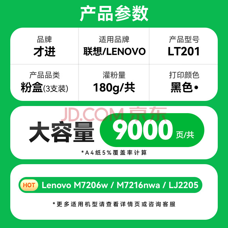 商品相册:才进 适用联想m7206硒鼓lt201粉盒m7216nwa激光打印一体m7206w墨盒s1801 m7256whf lj2205墨粉m1851碳粉m1840第