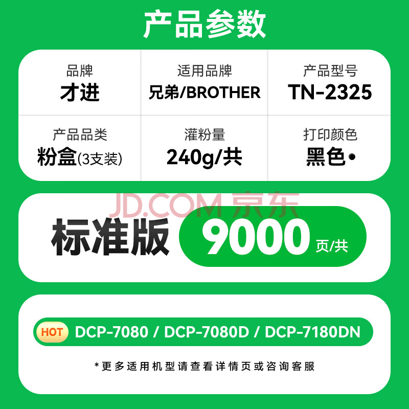 商品相册:才进 适用兄弟dcp7080d硒鼓7180dn mfc7380激光打印机墨盒tn2325粉盒hl2260d 7480d一体机DR2350鼓架7880DN第