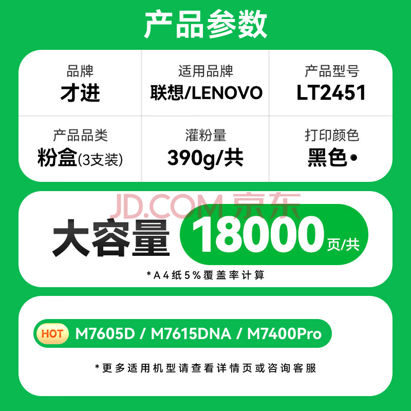商品相册:才进 联想m7400pro粉盒m7605d打印机硒鼓m7615dna lj2605d m7655dhf一体机m7405d m7455dnf lt2451h M7400w第1张/共7