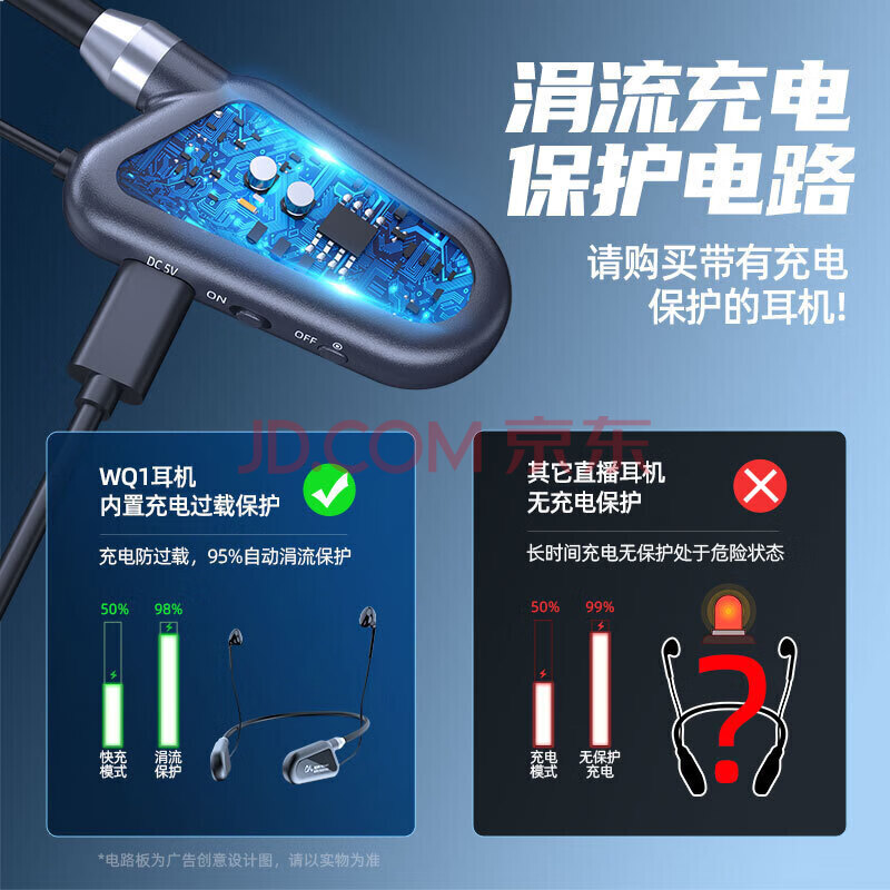 商品相册:魅声 WQ1无线监听耳机颈挂式耳机 户外舞台演出直播声卡专用智能降噪双立体声专业直播耳机第