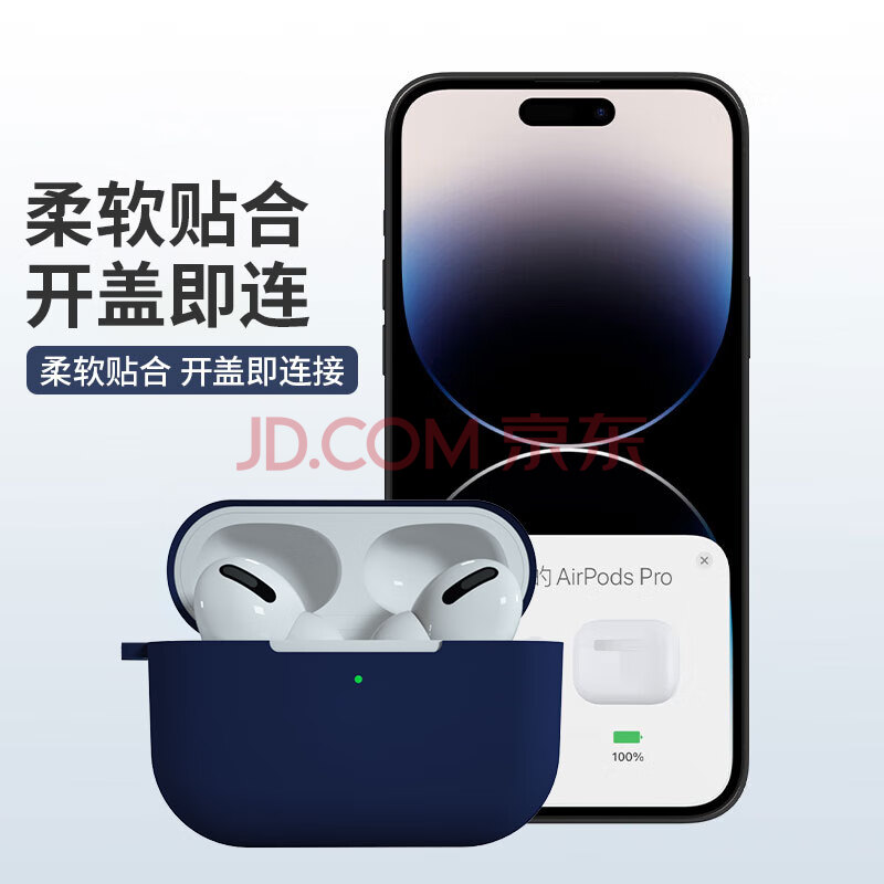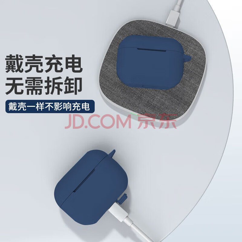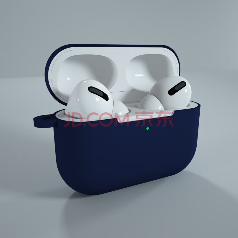 商品相册:KMaxAI适用AirPods Pro二代保护套硅胶软壳带挂绳挂钩 苹果真无线耳机2 C口磨砂套防指纹纯色简约 午夜蓝第