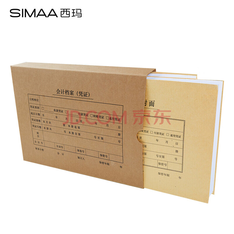 商品相册:西玛A4凭证盒 单封口600g牛卡纸305*220*50mm 10个/包 a4记账凭证纸会计档案装订盒HZ352第