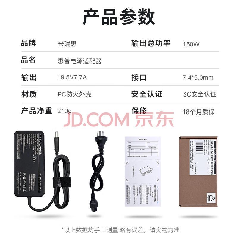 商品相册:米瑞思(mryc)惠普笔记本充电器19.5V7.7A 150W 7.4*5.0接口大口带针hp电脑电源适配器线第