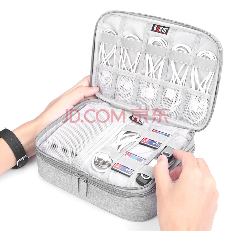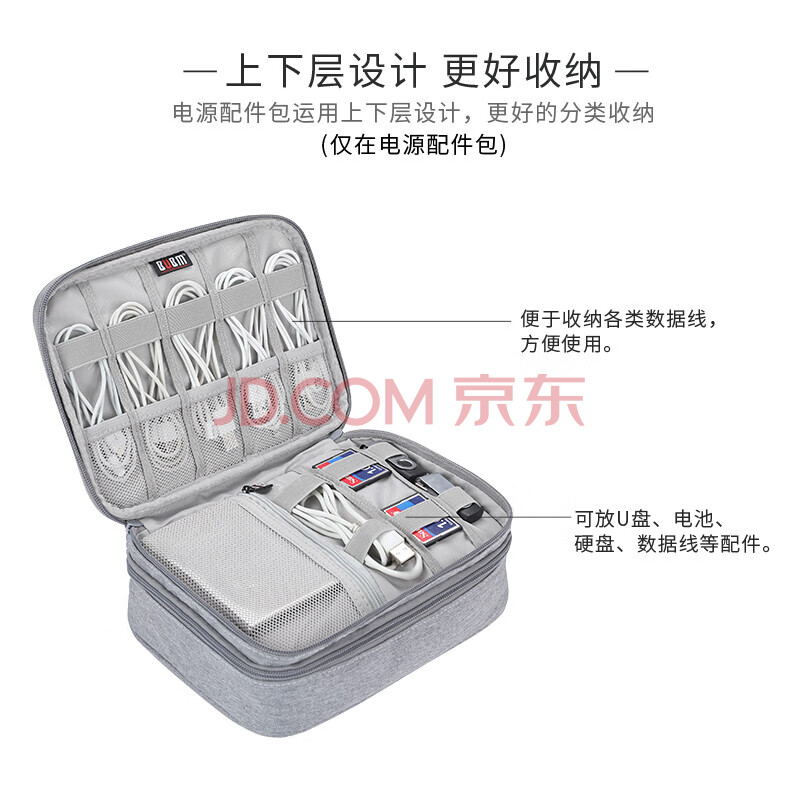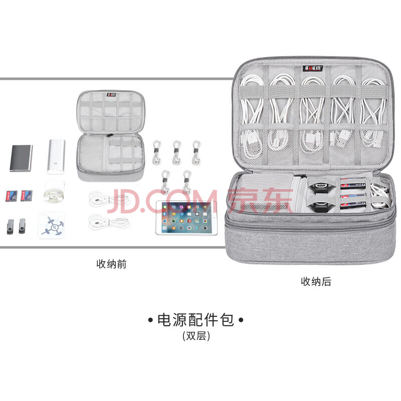 商品相册:JPLAYER数据线收纳包笔记本充电器鼠标移动电源袋U盘硬盘保护套配件双层大容量旅行便携多功能整理袋第