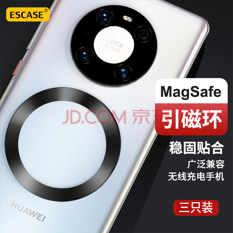 商品相册:ESCASE【三片装】无线充电磁吸贴片引磁环magsafe手机支架环型磁铁背贴吸盘 通用苹果14/13华为小米 黑色第