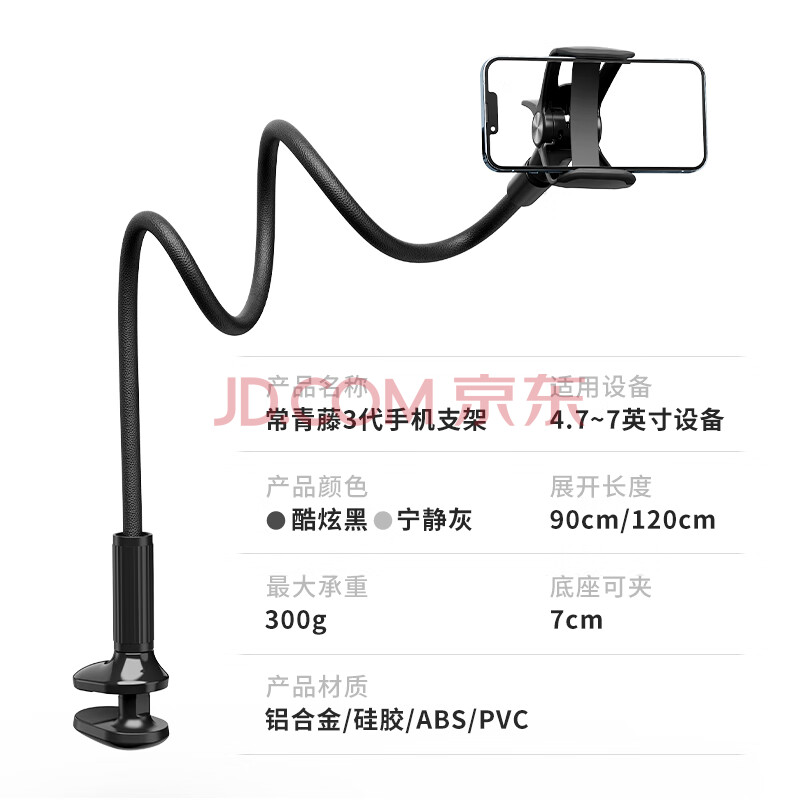 商品相册:赛鲸 常青藤3手机支架床头支架桌面床上懒人自拍杆拍摄俯拍躺着看手机可调节宿舍卧室床上1.2米加长款第