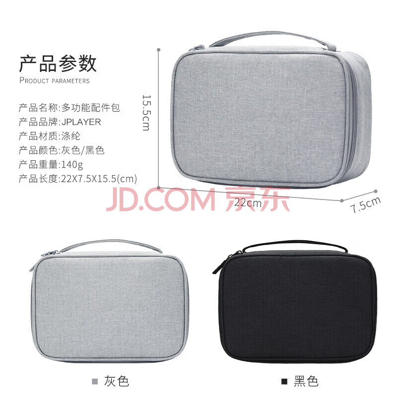 商品相册:JPLAYER数据线收纳包笔记本充电器鼠标移动电源袋U盘硬盘保护套配件大容量旅行便携多功能整理袋第