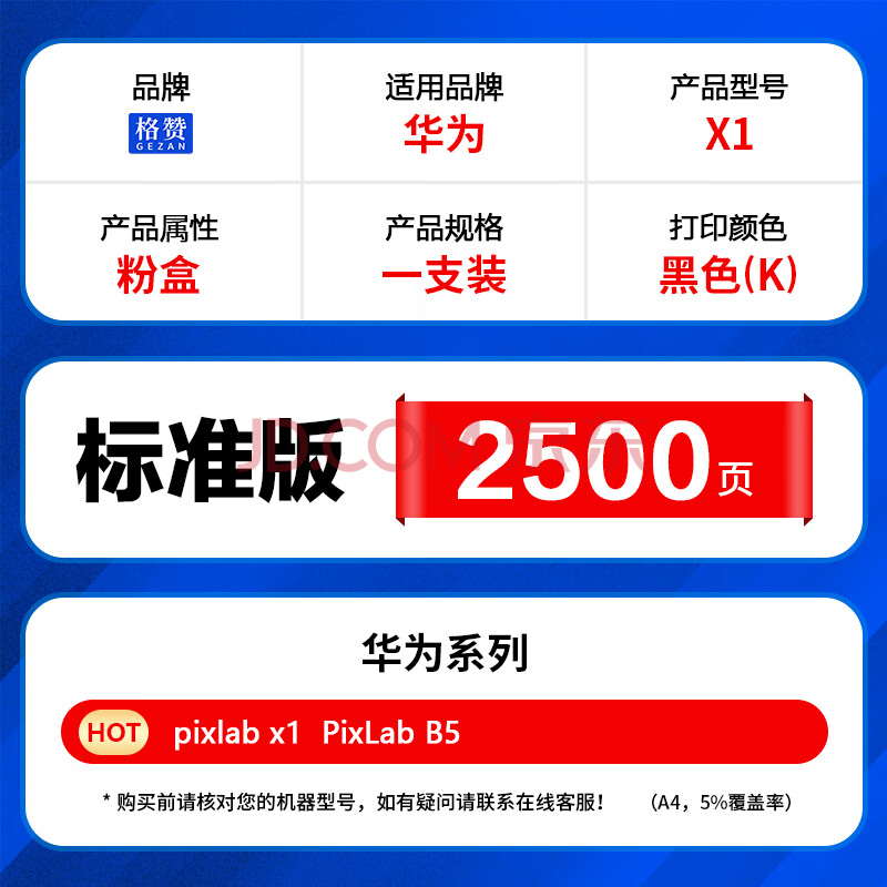 商品相册:格赞X1粉盒易加粉 适用华为打印机墨盒pixlab x1墨盒F-1500粉盒 华为PixLab B5激光打印机硒鼓碳粉墨粉盒耗材第1张/共1