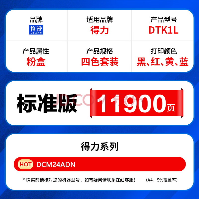 商品相册:格赞DTK1L粉盒 适用得力DCM24ADN粉盒CP2400DN CM2400ADN打印机硒鼓墨盒墨粉盒碳粉盒 四色套装第