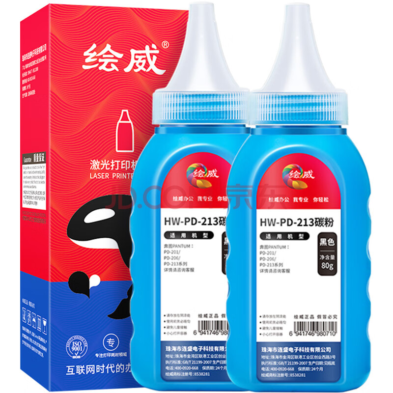 商品相册:绘威适用奔图PD-213碳粉2支装 通用奔图TO-400 TO-405 TO-418 TO-426 TO-460打印机墨粉盒墨粉第