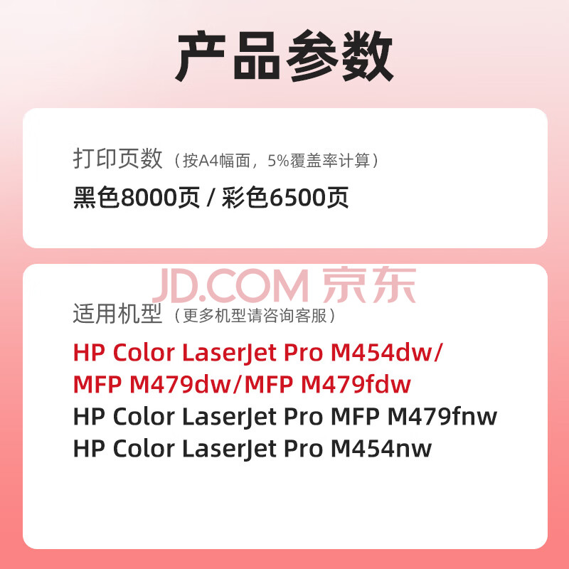 商品相册:玖六零416a硒鼓适用惠普m479dw硒鼓m479fdw墨盒m454dw m454dn m480f m479fnw m455dn打印机碳粉盒w2040a 带芯片套装第