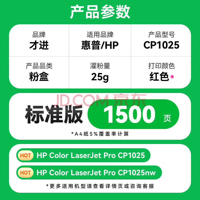 商品相册:才进原装适用惠普CP1025粉盒红色HP LaserJet CP1025nw color激光打印机硒鼓ce313a专用墨盒易加粉126a碳粉盒第