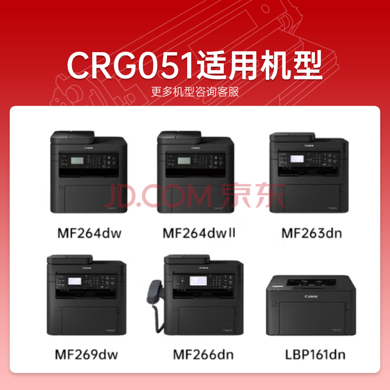 商品相册:双杰crg051粉盒 适用佳能MF269dw硒鼓 mf264dwii墨粉盒 LBP161dn LBP162dw MF260dn打印机墨盒 佳能051粉盒第